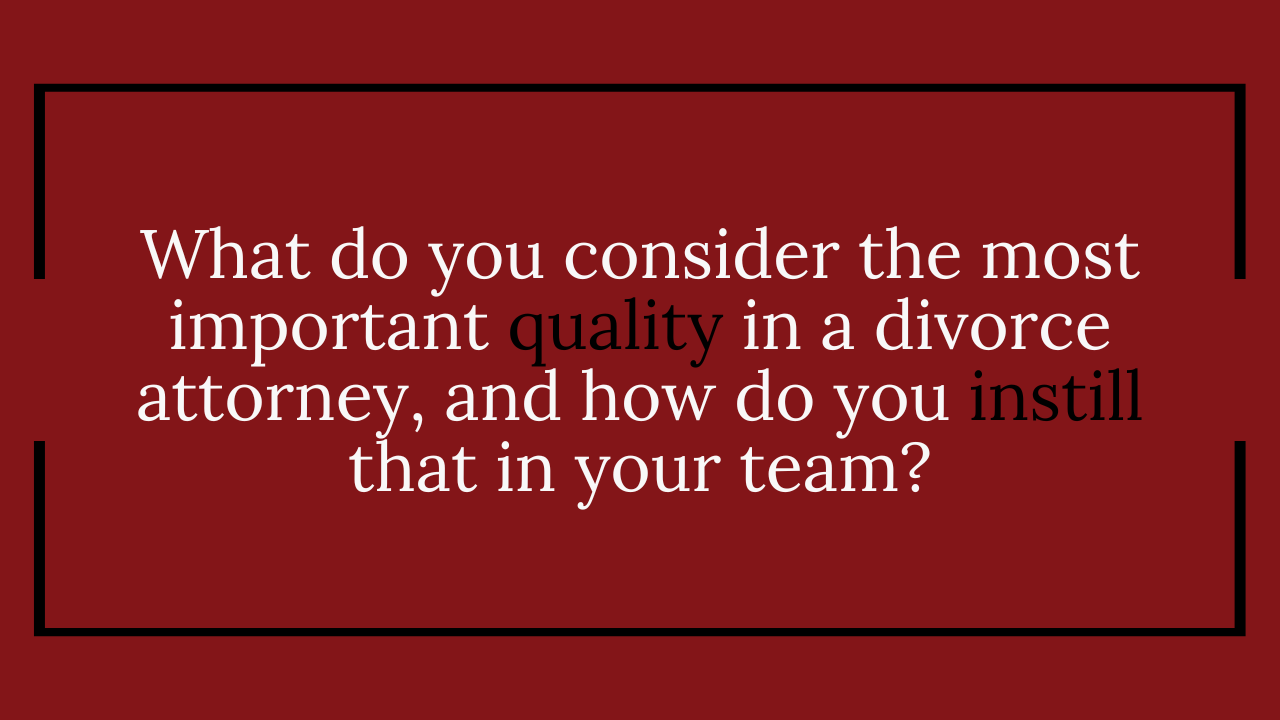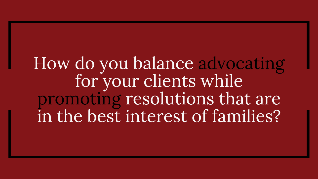 Family is particularly important to me, and I understand that when our clients walk through our door, they entrust us with their future and their family’s future. I consider that a privilege, and my goal in every case is to make sure that my client understands the law as it applies to his or her case, is educated as to the paths available, and is a partner in decision making.